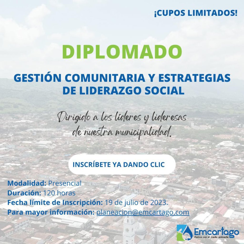 13 septiembre, 2023Publicado por Publicador Noticias EMC en 13 septiembre, 2023Categorías Cápsulas Informátivas Comunicados de PrensaDIPLOMADO EN GESTIÓN COMUNITARIA Y ESTRATEGIAS DE LIDERAZGO SOCIALDIPLOMADO EN GESTIÓN COMUNITARIA Y ESTRATEGIAS DE LIDERAZGO SOCIAL #Emcartago invita a todos aquellos líderes de nuestra municipalidad que […]