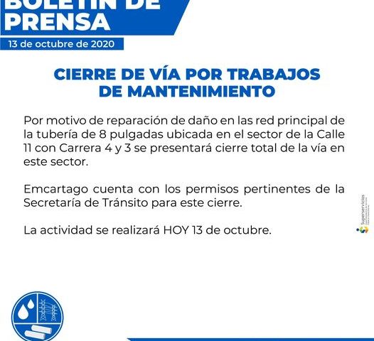 13 octubre, 2020CIERRE DE VIA POR TRABAJOS DE MANTENIMIENTO