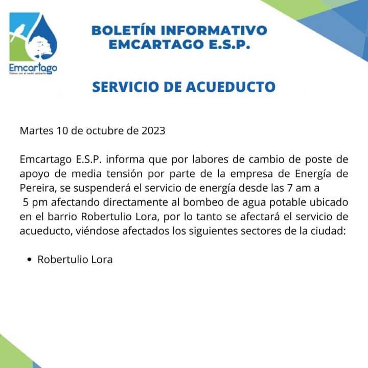 Emcartago E.S.P. informa que mañana 11 de octubre de 2023 por labores de cambio de poste de […]