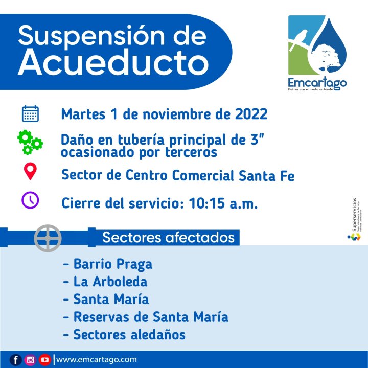 Daño ocasionado por terceros en el sector de Santa Fe, los siguientes son los sectores afectados.
