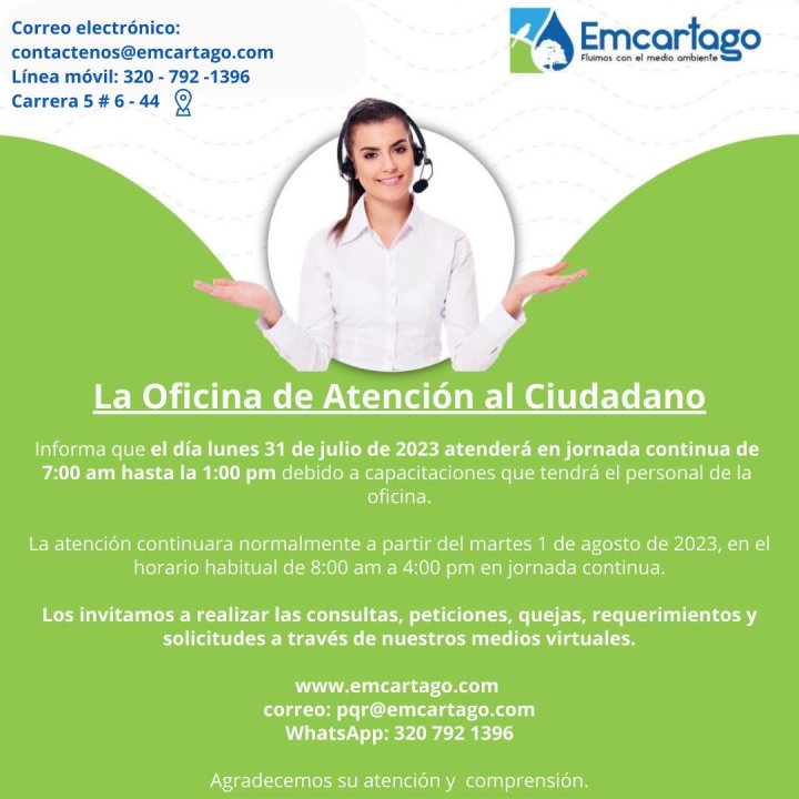 22 septiembre, 2023Publicado por Publicador Noticias EMC en 22 septiembre, 2023Categorías Boletines Comunicados de PrensaATENCIÓN AL CIUDADANONuestra oficina de atención al ciudadano atenderá en jornada continua el lunes 31 de julio de 7:00 a.m. […]