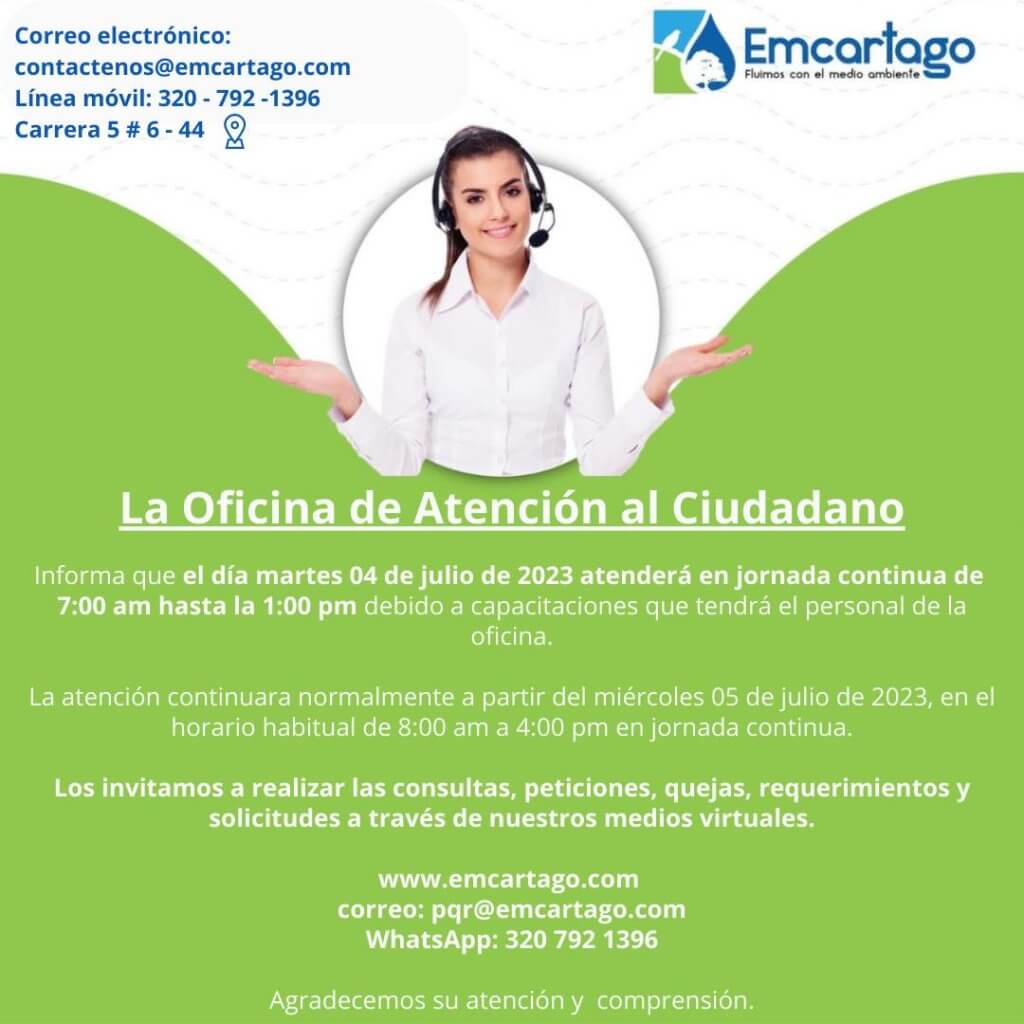 11 septiembre, 2023Publicado por Publicador Noticias EMC en 11 septiembre, 2023Categorías Boletines Comunicados de PrensaHORARIO ATENCIÓN AL CIUDADANO#AtenciónAlCiudadano