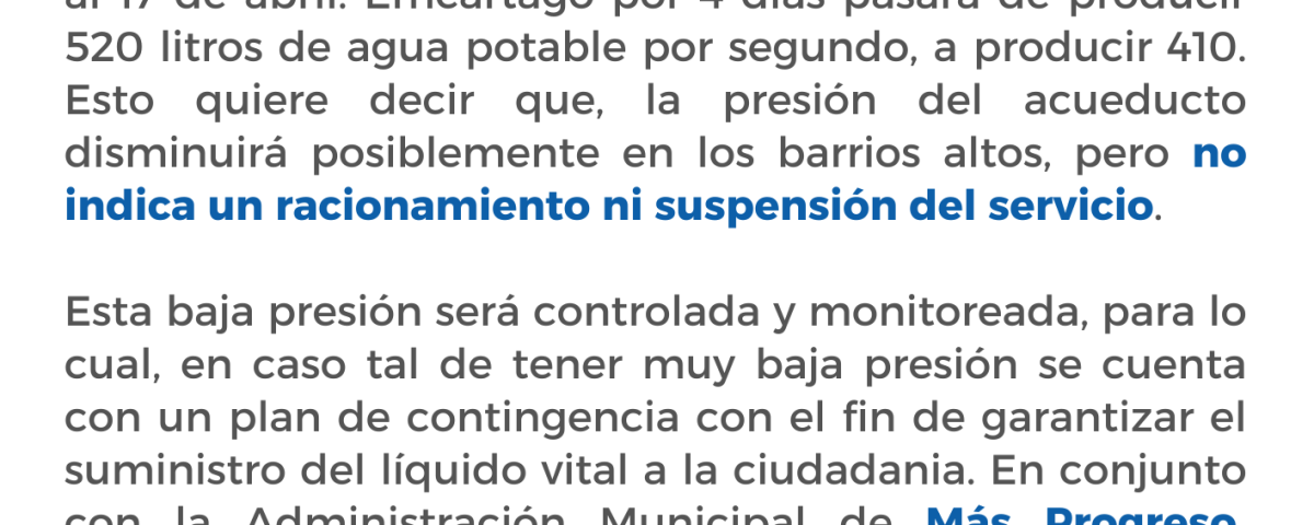 1 agosto, 2025BAJA PRESIÓN DEL ACUEDUCTO POR REPARACIONES