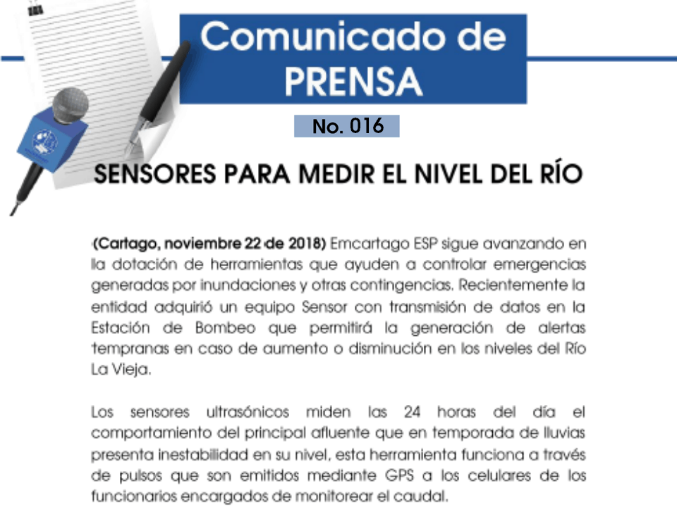 Las Empresas Municipales de Cartago E.S.P. dando cumplimiento a la Resolución CREG 070 de 1998, informa que para la facturación del mes de febrero 2019 compensará por FES (frecuencia interrupciones servicio) en el servicio de energía a los suscriptores de los circuitos y locales relacionados en la tabla adjunta, que fueron afectados por el sobrepaso en la duración de los cortes permitidos y aprobados por la Comisión de Regulación de Energía y Gas, en el cuarto trimestre del año 2018.