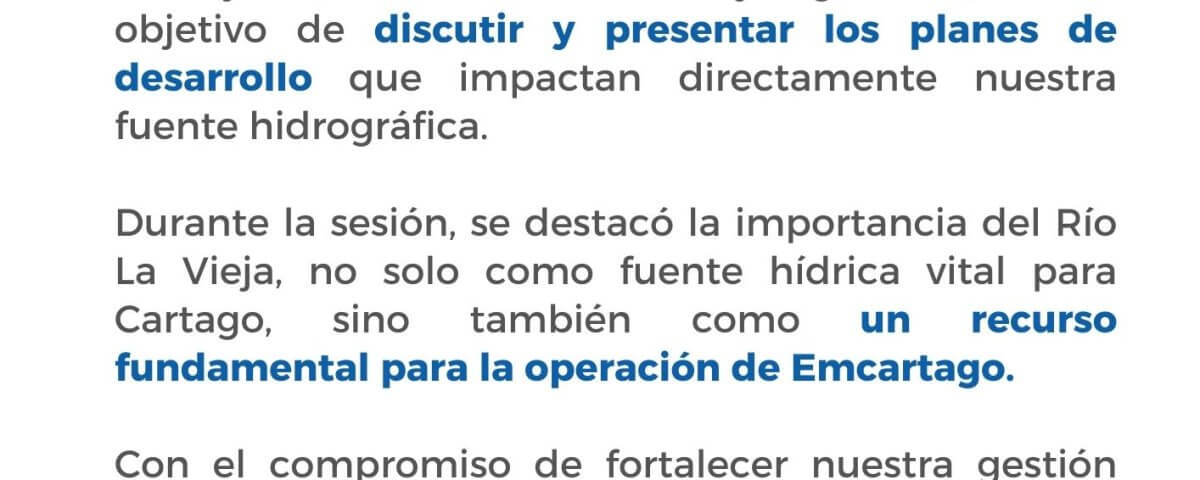 CANALIZACIÓN ZANJÓN ORTEZ1 agosto, 2025GALA AMBIENTAL1 agosto, 2025 CONSEJO CUENCA POMCA RÍO LA VIEJA Publicado por Medios en 1 agosto, 2025 Categorías Boletines Comunicados de Prensa Tags COMUNICADO PRENSA CONSEJO CUENCA POMCA RÍO LA VIEJA Post Relacionados1 agosto, 2025ACCIONES PREVENTIVAS FENOMENO DEL NIÑOLeer Más1 agosto, 2025AMPLIACIÓN PLANTA DE TRATAMIENTO NO. 2Leer Más1 agosto, 2025BAJA PRESIÓN DEL ACUEDUCTO POR REPARACIONESLeer Más Deja una respuesta Cancelar la respuestaTu dirección de correo electrónico no será publicada. Los campos obligatorios están marcados con *Comentario * Nombre Correo electrónico Web Guarda mi nombre, correo electrónico y web en este navegador para la próxima vez que comente. Δ