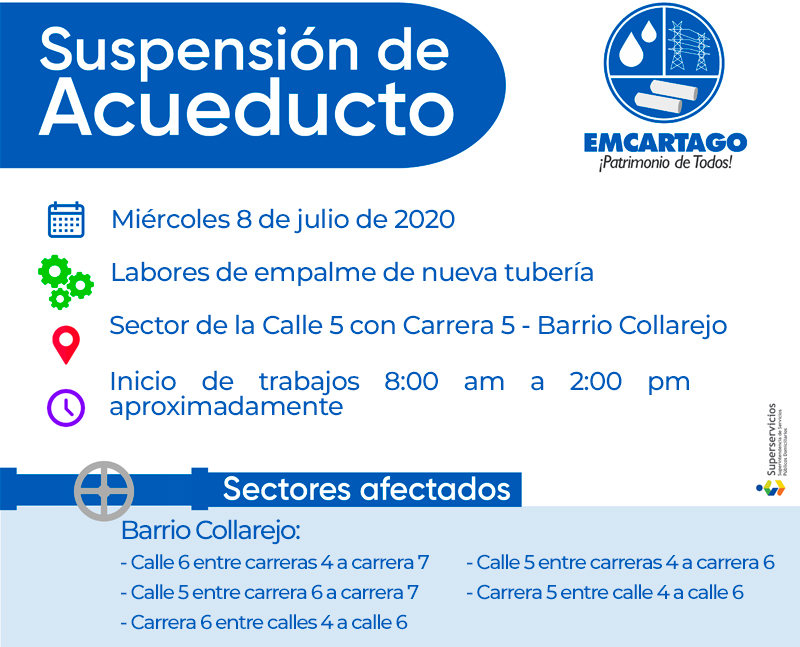SUSPENSIÓN DE ACUEDUCTO ESTE MIÉRCOLES 8 DE JULIO