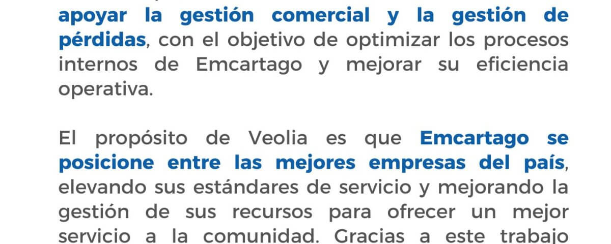 NUEVA FACTURA1 agosto, 2025ACUEDUCTO RURAL1 agosto, 2025 RESULTADOS PRIMER SEMESTRE VEOLIA Publicado por Medios en 1 agosto, 2025 Categorías Boletines Comunicados de Prensa Tags COMUNICADO DE PRENSA RESULTADOS PRIMER SEMESTRE VEOLIA Post Relacionados1 agosto, 2025ACCIONES PREVENTIVAS FENOMENO DEL NIÑOLeer Más1 agosto, 2025AMPLIACIÓN PLANTA DE TRATAMIENTO NO. 2Leer Más1 agosto, 2025BAJA PRESIÓN DEL ACUEDUCTO POR REPARACIONESLeer Más Deja una respuesta Cancelar la respuestaTu dirección de correo electrónico no será publicada. Los campos obligatorios están marcados con *Comentario * Nombre Correo electrónico Web Guarda mi nombre, correo electrónico y web en este navegador para la próxima vez que comente. Δ