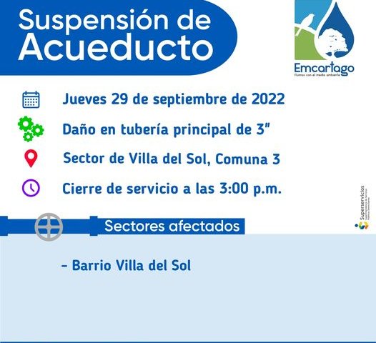 30 septiembre, 2022Suspensión de Acueducto