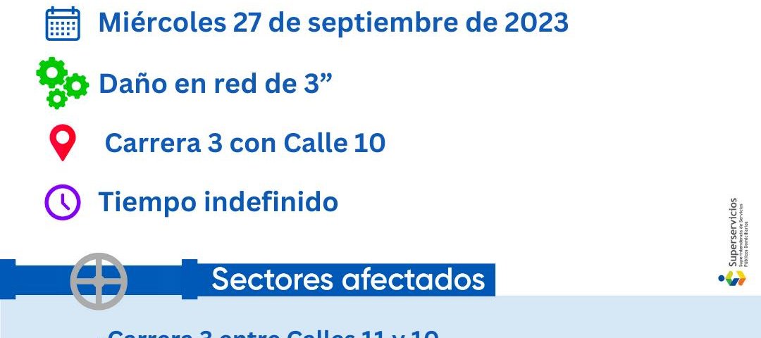 LIMPIEZA DE SUMIDEROS27 septiembre, 2023SUSPENSIÓN DE ACUEDUCTO27 septiembre, 2023 SUSPENSIÓN DE ACUEDUCTO Publicado por Publicador Noticias EMC en 27 septiembre, 2023 Categorías ATENCIÓN AL CLIENTE Comunicados de Prensa Tags #SuspensiónDeAcueducto Post Relacionados1 agosto, 2025ACCIONES PREVENTIVAS FENOMENO DEL NIÑOLeer Más1 agosto, 2025AMPLIACIÓN PLANTA DE TRATAMIENTO NO. 2Leer Más1 agosto, 2025BAJA PRESIÓN DEL ACUEDUCTO POR REPARACIONESLeer Más Deja una respuesta Cancelar la respuestaTu dirección de correo electrónico no será publicada. Los campos obligatorios están marcados con *Comentario * Nombre Correo electrónico Web Guarda mi nombre, correo electrónico y web en este navegador para la próxima vez que comente. Δ