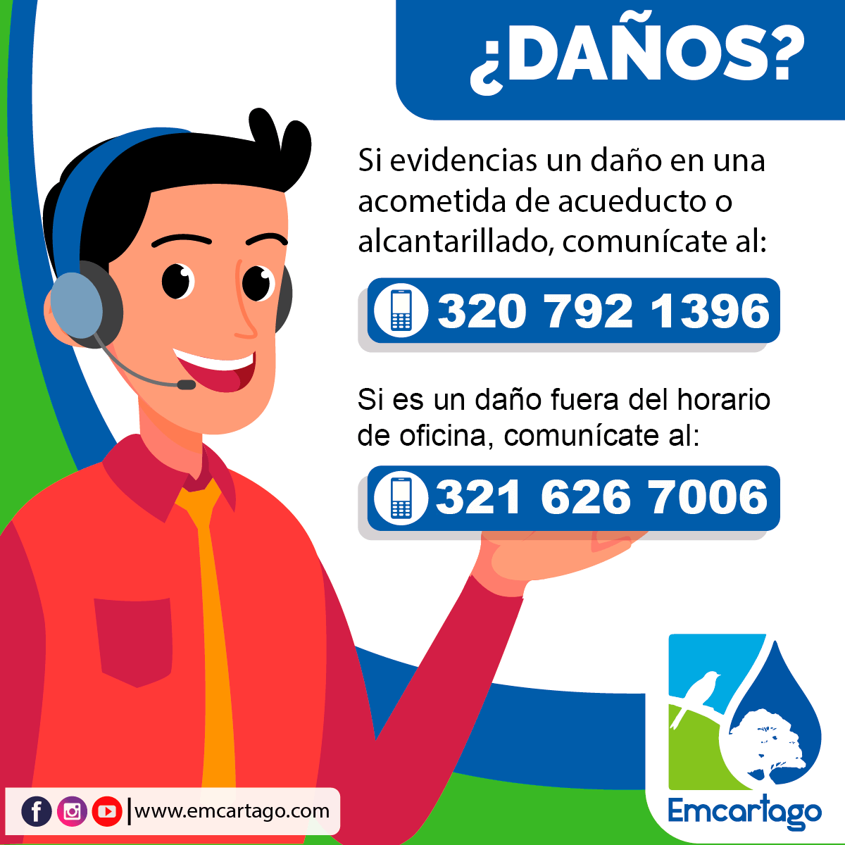 Para reportar daños puede comunicarse con los siguientes teléfonos.