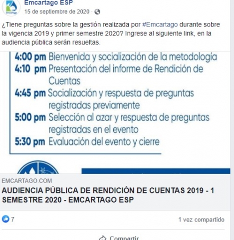 Audiencia Pública de Rendición de Cuentas Año 2020