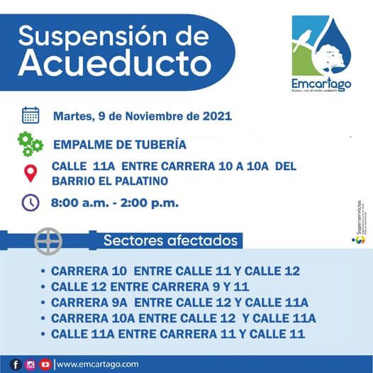 #SuspensiónDeAcueducto Este martes 9 de noviembre se efectuará una suspensión de acueducto en algunos sectores de la ciudad […]