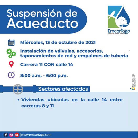 Este miércoles 13 de octubre se efectuará una suspensión de acueducto en algunos sectores de la ciudad con […]