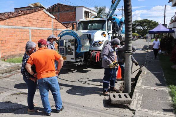 Atención con el equipo vactor a daño de alcantarillado en el barrio La Esperanza.