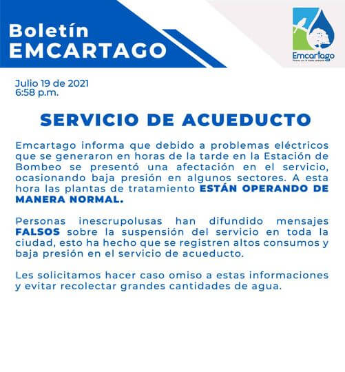 Suspensión del servicio de acueducto este jueves 22 de julio en diferentes sectores de la ciudad, debido a […]