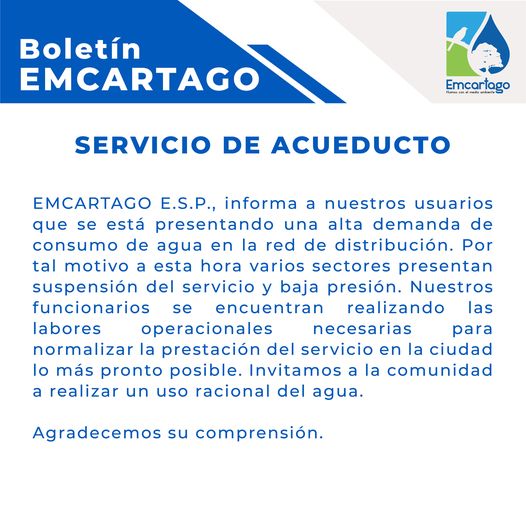 Suspensión del servicio de acueducto por daño en tubería principal del sector de la Calle 13 con Carrera […]