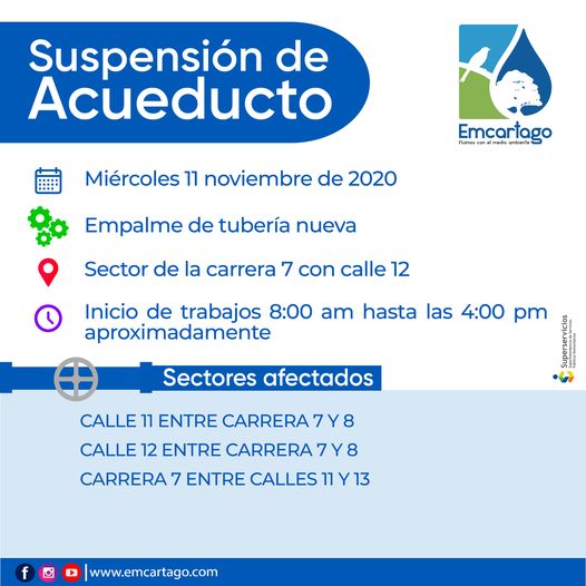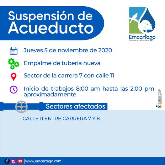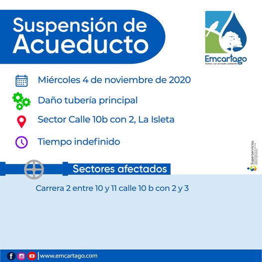 Suspensión del servicio de acueducto, en estos momentos en el sector de la Carrera 2 entre 10 y […]