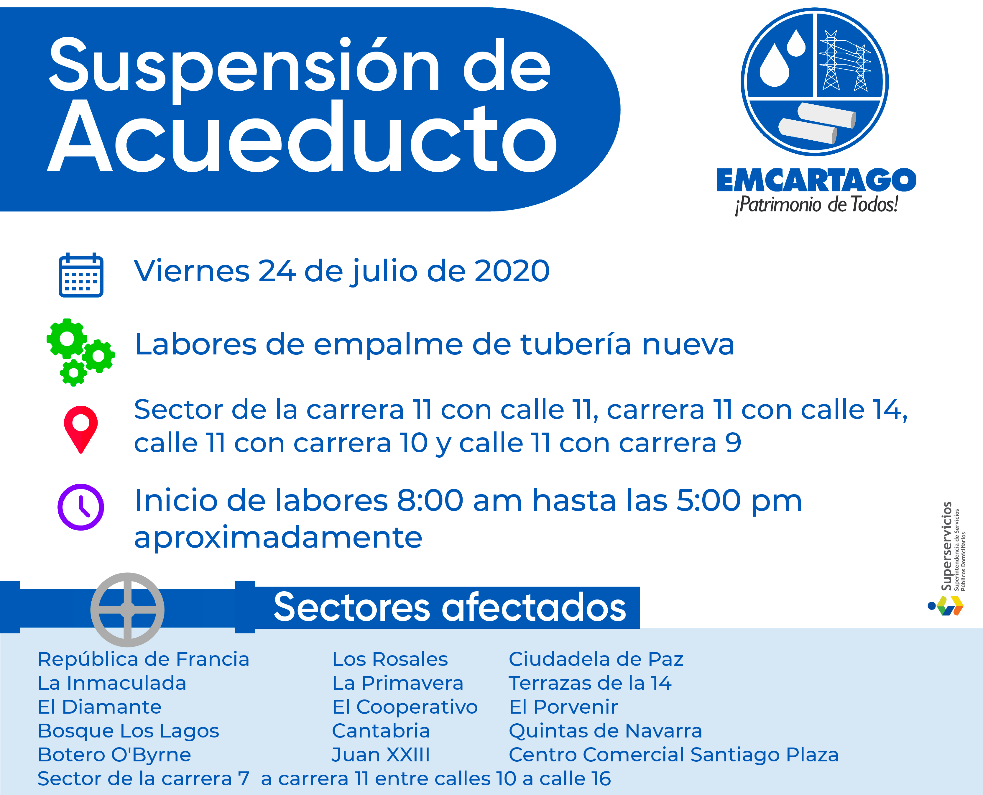 SUSPENSIÓN DE ACUEDUCTO ESTE VIERNES 24 DE JULIO DE 2020