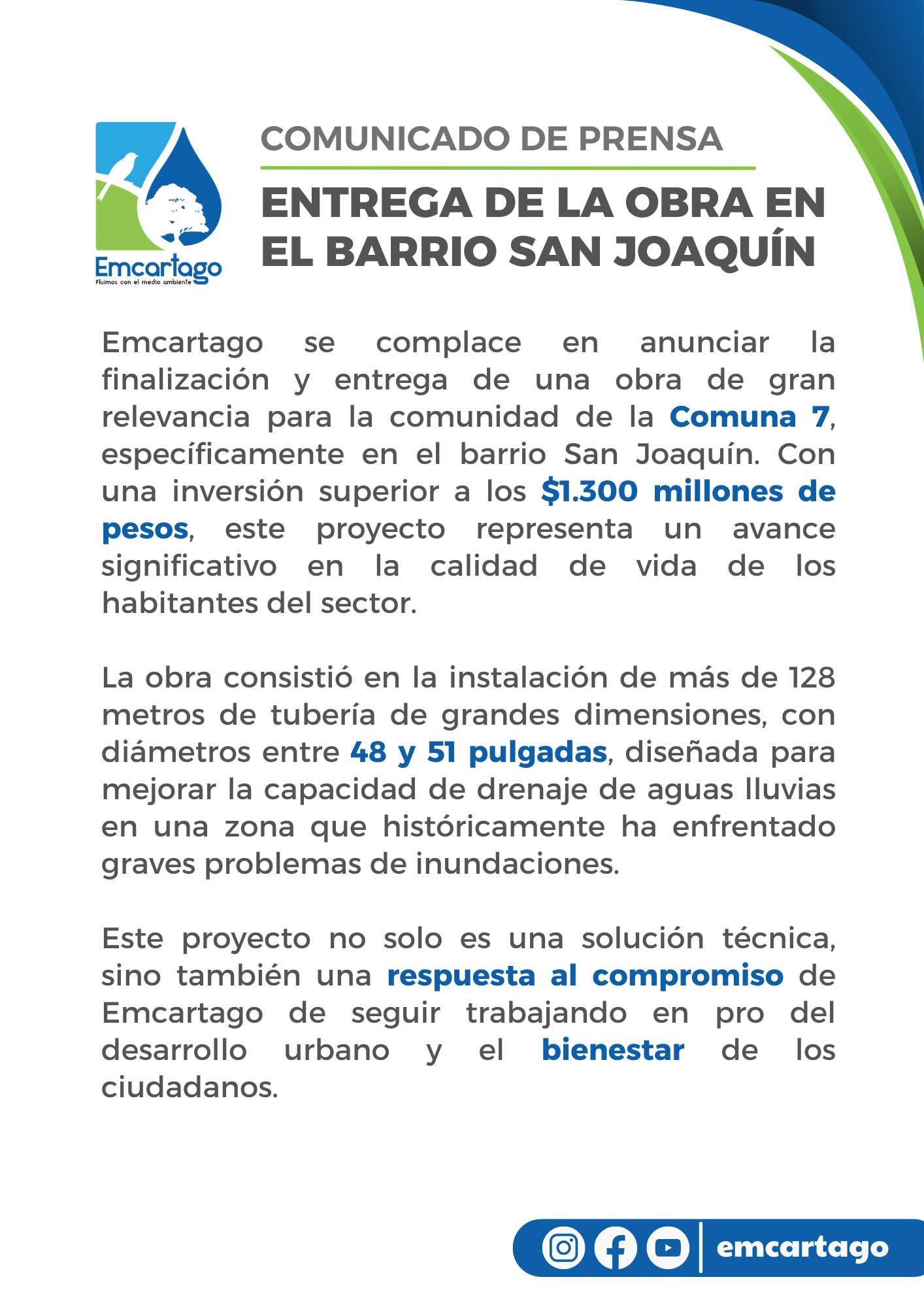 COMUNICADO DE PRESA ENTREGA DE LA OBRA EN EL BARRIO SAN JOAQUÍN