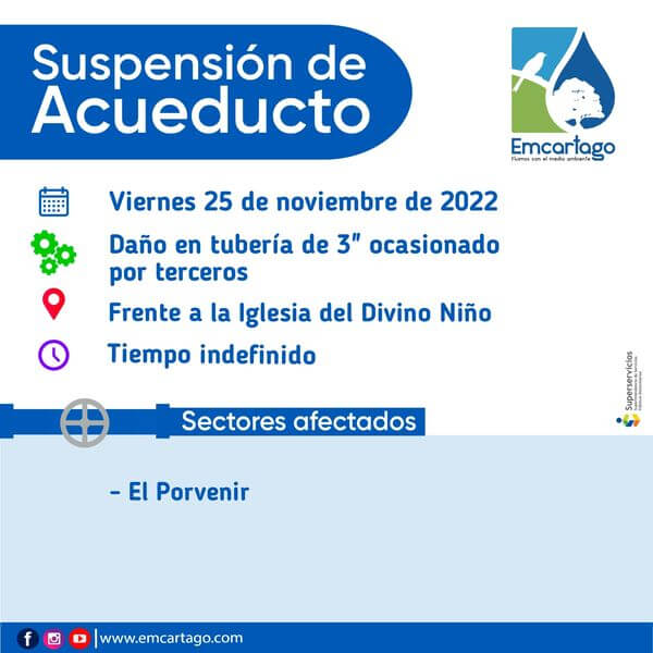 Daño en tubería de 3″ frente a la Iglesia del Divino Niño, estos son los sectores afectados.