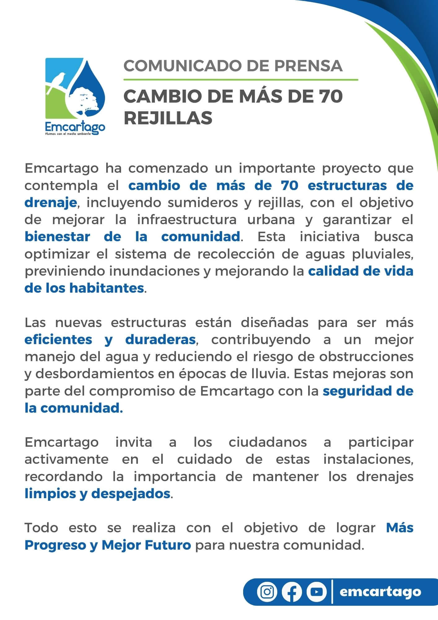 COMUNICADO PRENSA CAMBIO DE MÁS DE 70 REJILLAS