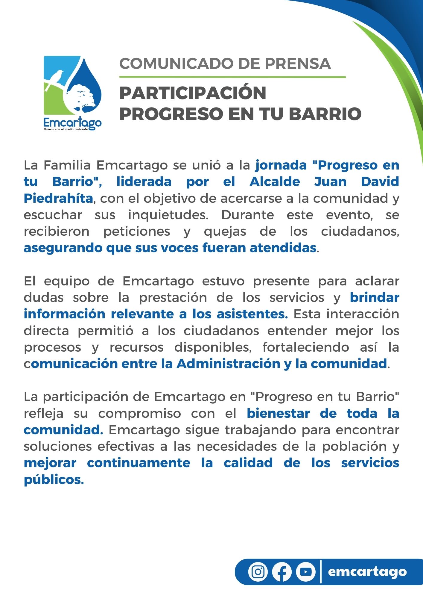 COMUNICADO DE PRENSA PARTICIPACIÓN PROGRESO EN TU BARRIO