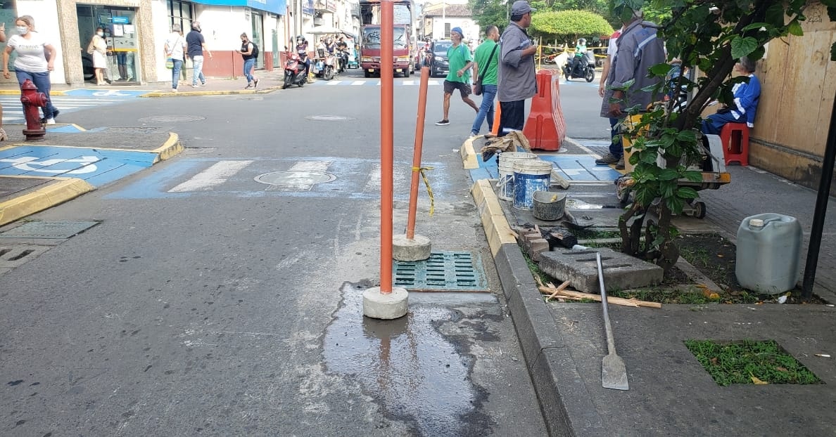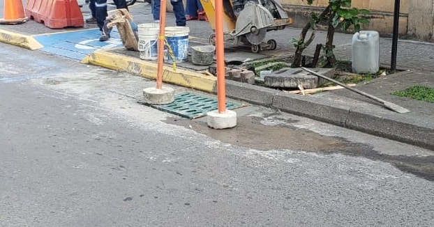 A esta hora, hacemos la reposición de rejillas y obras complementarias en la zona céntrica de la ciudad en compañía de Tránsito Municipal.