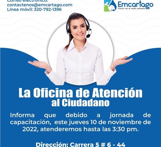 OBRAS EMCARTAGO10 noviembre, 2022OBRAS EMCARTAGO10 noviembre, 2022 ATENCION AL USUARIO Publicado por Enlaza en 10 noviembre, 2022 Categorías Cápsulas Informátivas Sin categorizar Tags Post Relacionados1 agosto, 2025REPARACIÓN DE FUGAS EN LA PTAP NO. 2Leer Más1 agosto, 2025INVERSIONES PARA CARTAGOLeer Más1 agosto, 2025PARTICIPACIÓN PROGRESO EN TU BARRIOLeer Más Deja una respuesta Cancelar la respuestaTu dirección de correo electrónico no será publicada. Los campos obligatorios están marcados con *Comentario * Nombre Correo electrónico Web Guarda mi nombre, correo electrónico y web en este navegador para la próxima vez que comente. Δ