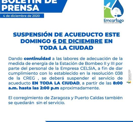 6 diciembre, 2020SUSPENSION ACUEDUCTO