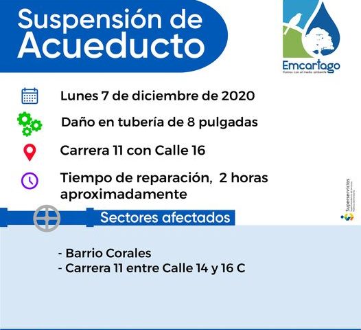 7 diciembre, 2020SUSPENSION ACUEDUCTO