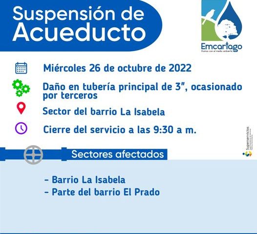 26 octubre, 2022SUSPENSION ACUEDUCTO