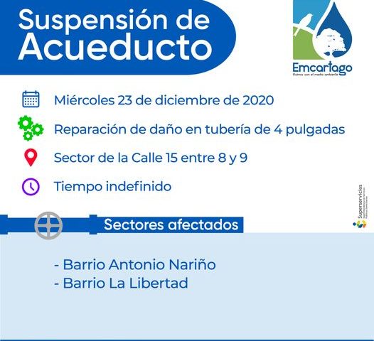 24 diciembre, 2020SUSPENSION ACUEDUCTO