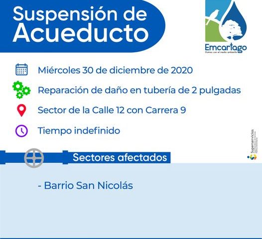 30 diciembre, 2020SUSPENSION ACUEDUCTO