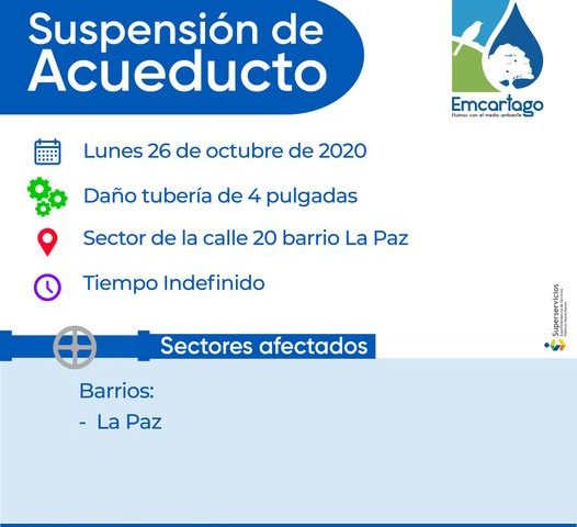 27 octubre, 2020SUSPENSION ACUEDUCTO