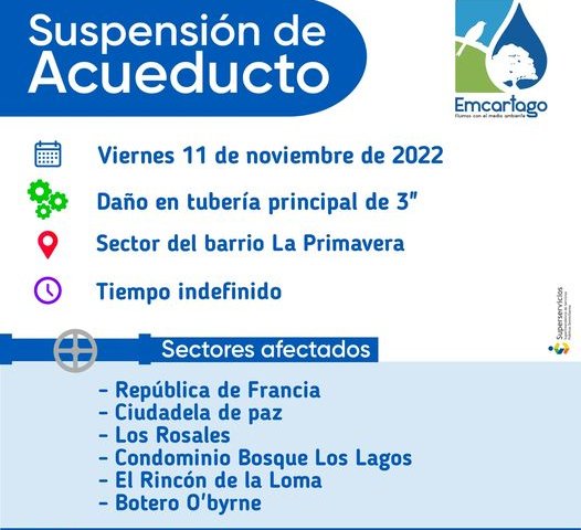 11 noviembre, 2022SUSPENSION ACUEDUCTO