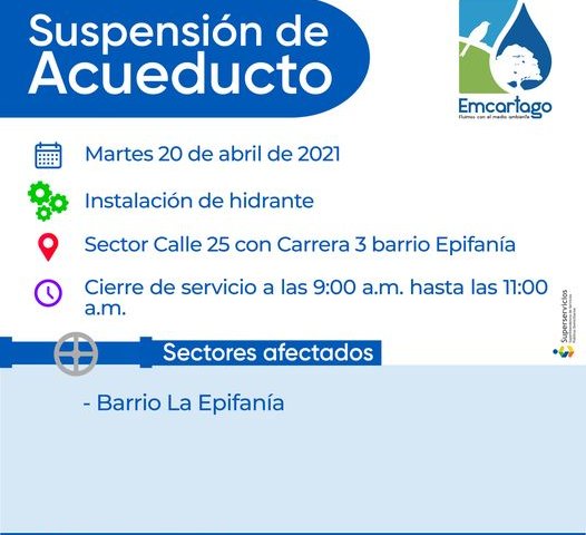 Suspensión del servicio de acueducto por instalación de hidrante, en el barrio La Epifanía.