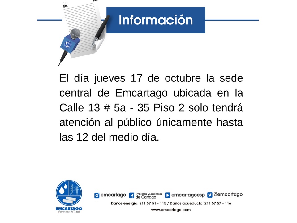 BOLETÍN Nº 017 – Aclaración sobre la calidad del agua de Emcartago